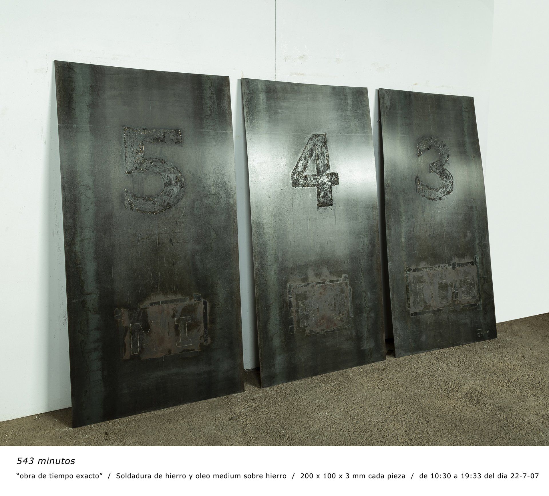 they are the consequence of mechanical actions (of insistence and accumulation); actions that are registered on the only content of the work: the digits and letters that define and evidence the time that has elapsed from its beginning to its conclusion (time that I have previously decided to be doing what I am).