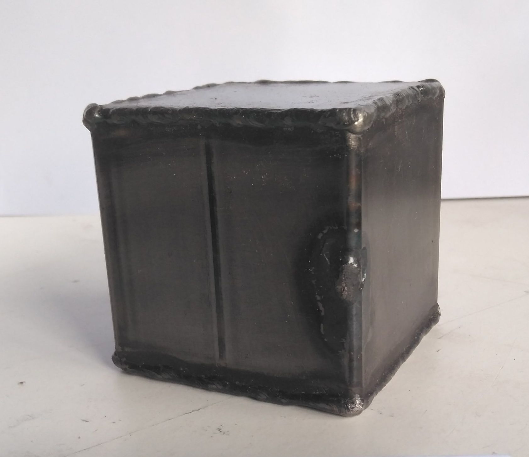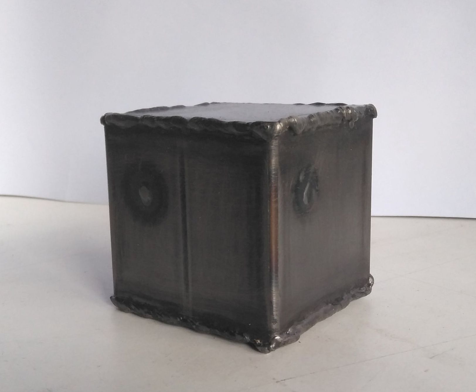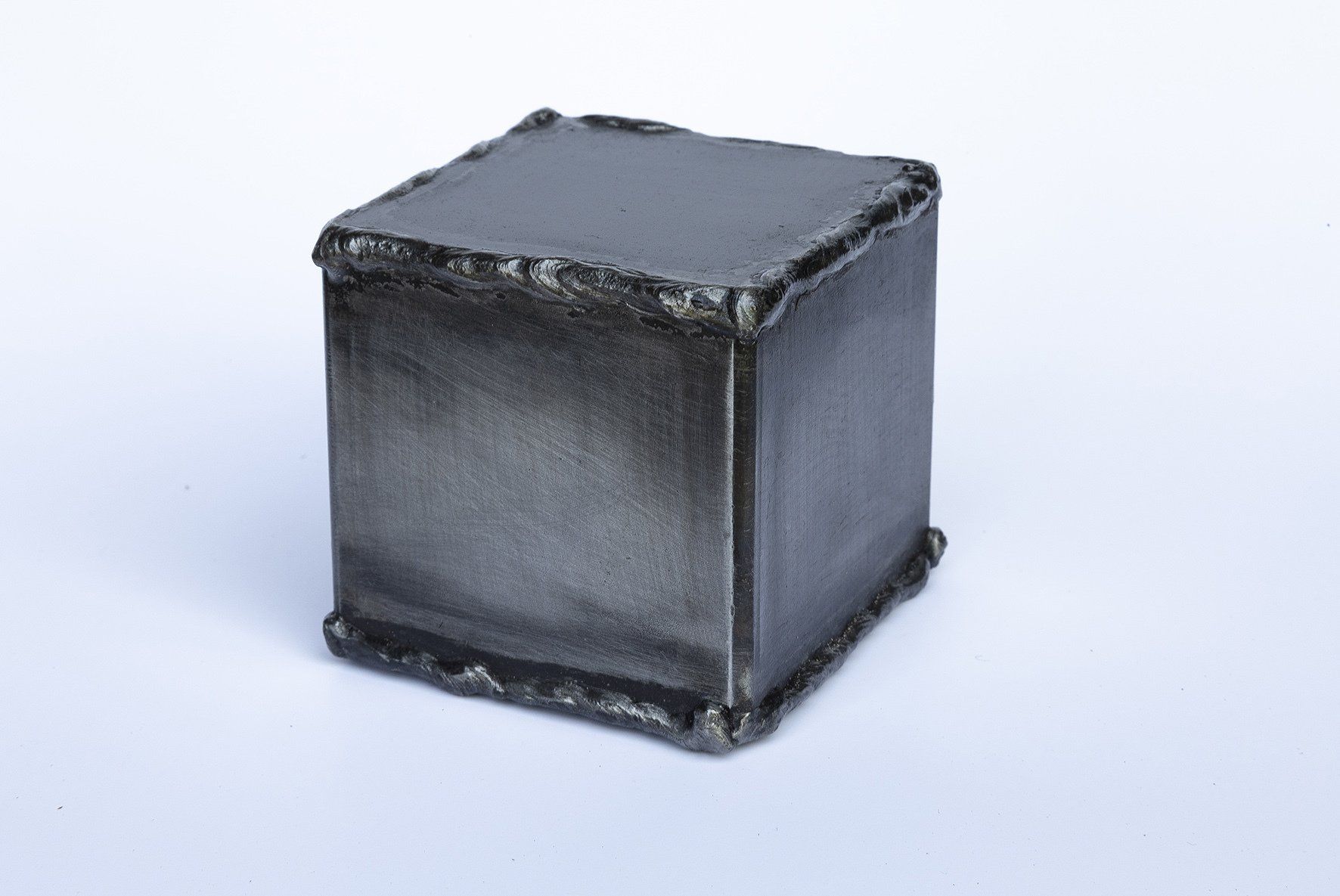 They are iron cubes measuring 7 x 7 x 7 centimeters, numbered (D-...), signed and dated