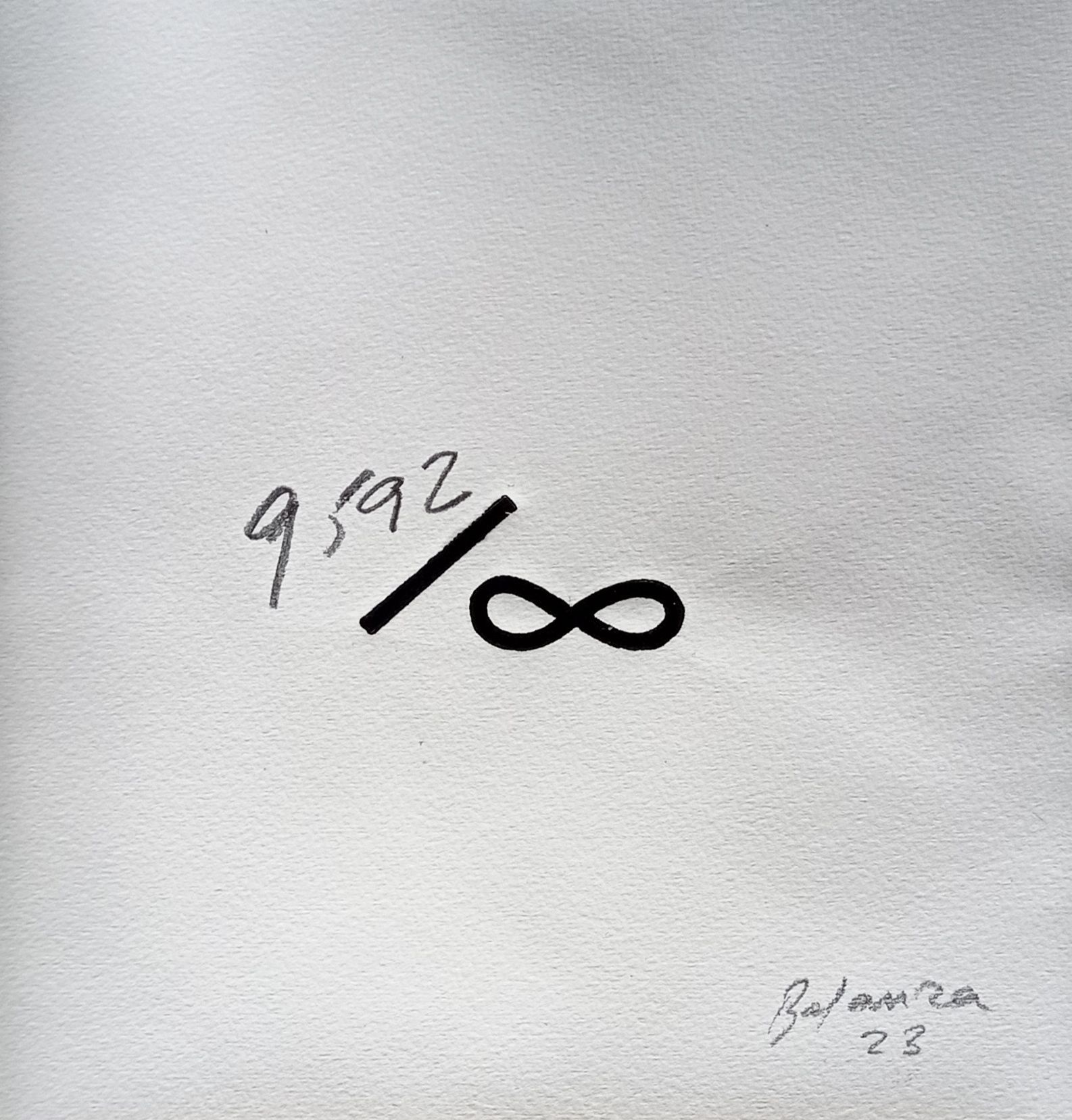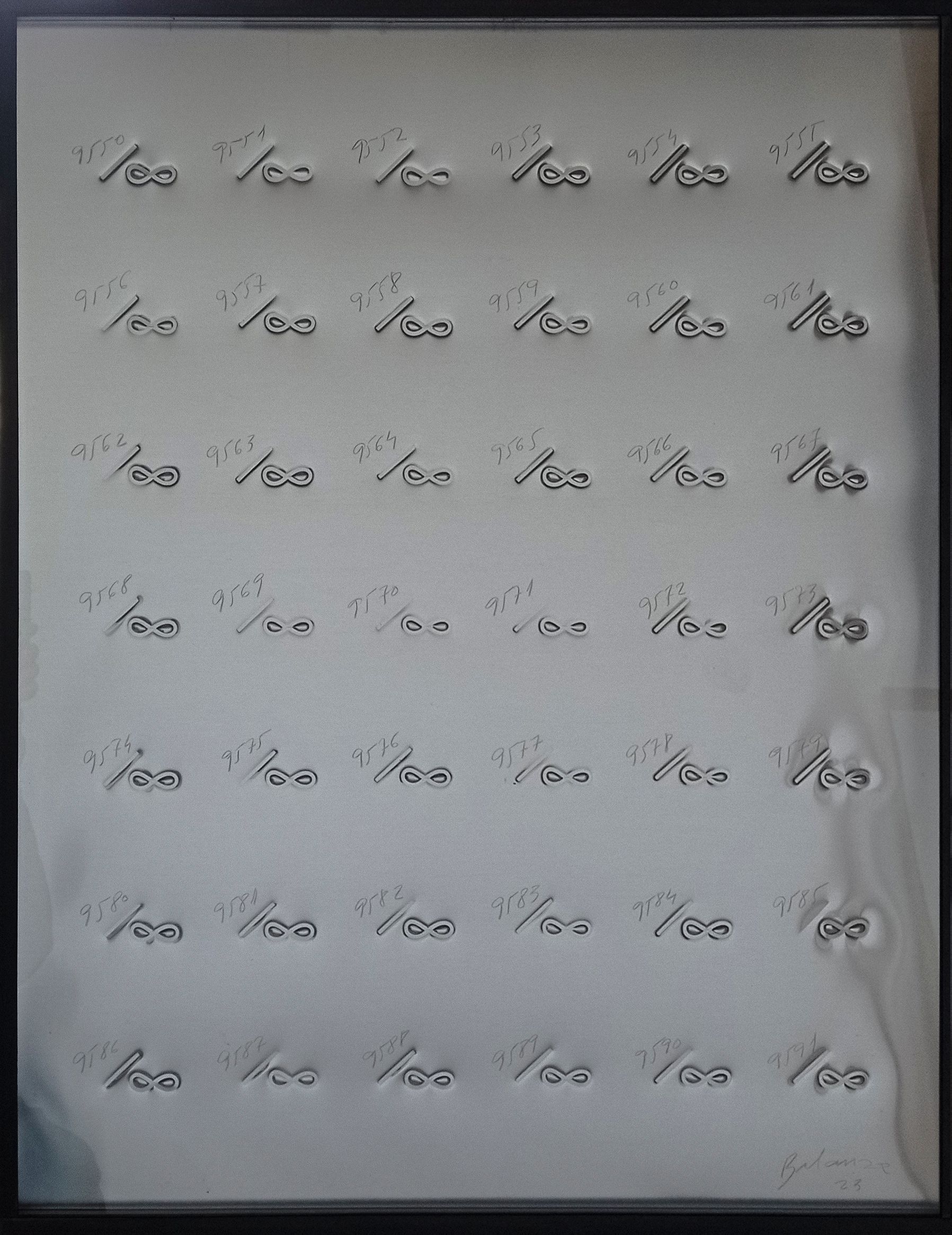 part of the seriation concept of engraving, where the (infinite) series itself, represented with the infinity symbol (∞), through the bar ( / ) is related to each of the numbers that make up the series.
