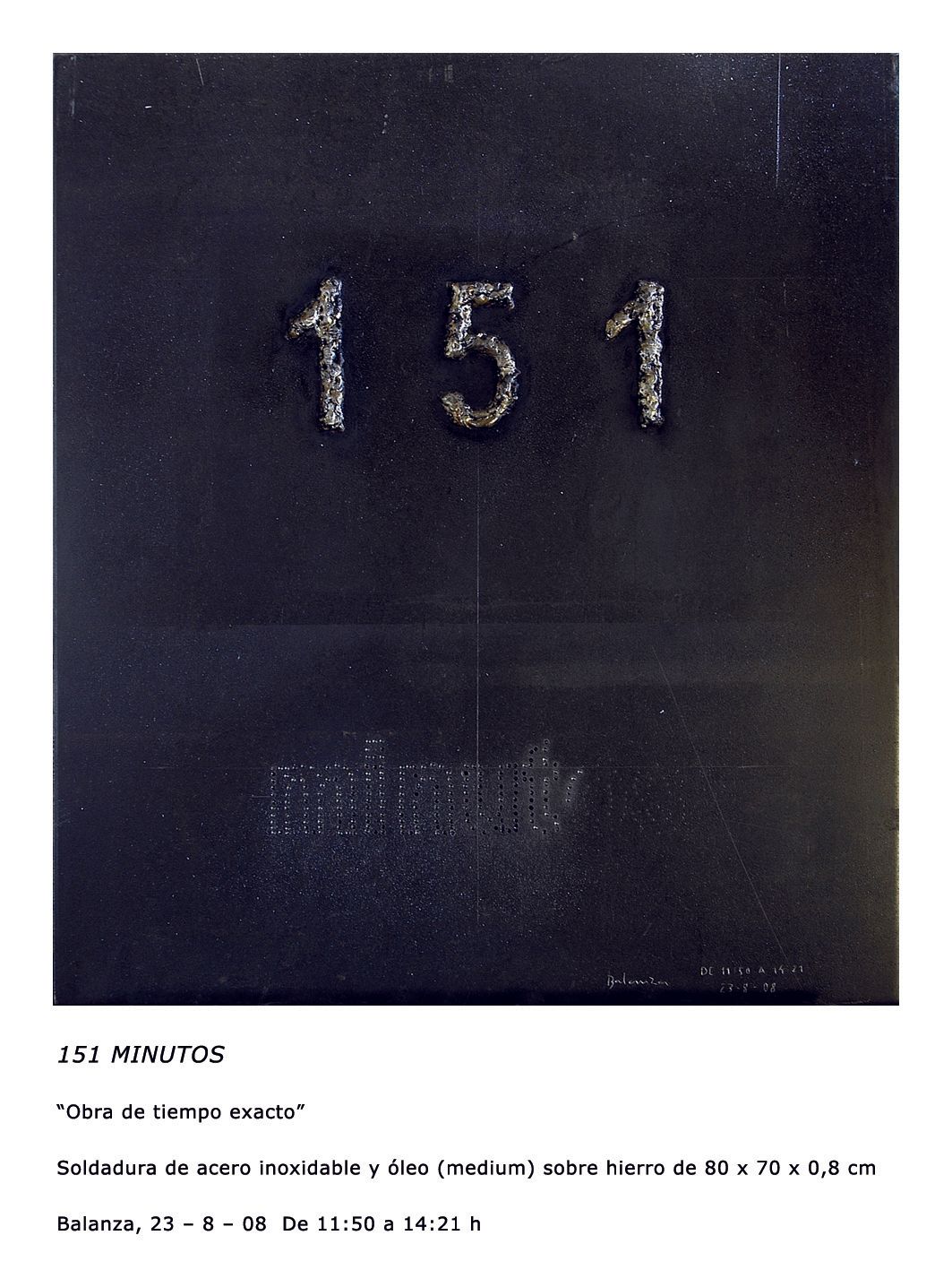 they are the consequence of mechanical actions (of insistence and accumulation); actions that are registered on the only content of the work: the digits and letters that define and evidence the time that has elapsed from its beginning to its conclusion (time that I have previously decided to be doing what I am).